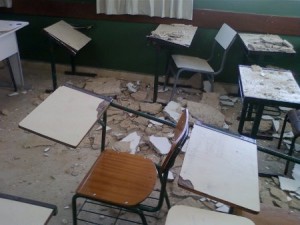 ” Existem lâmpadas queimadas, tetos de salas com infiltrações e rachaduras. Por sorte era hora do intervalo na hora em que o teto desabou, caso contrário alguns alunos teriam se machucado já que as pedras caíram sobre as carteiras.” disse a aluna.