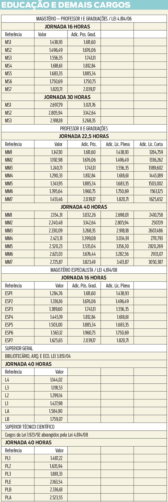 Confira as tabelas abaixo e saiba como   ficarão  os salarios reajustados dos servidores