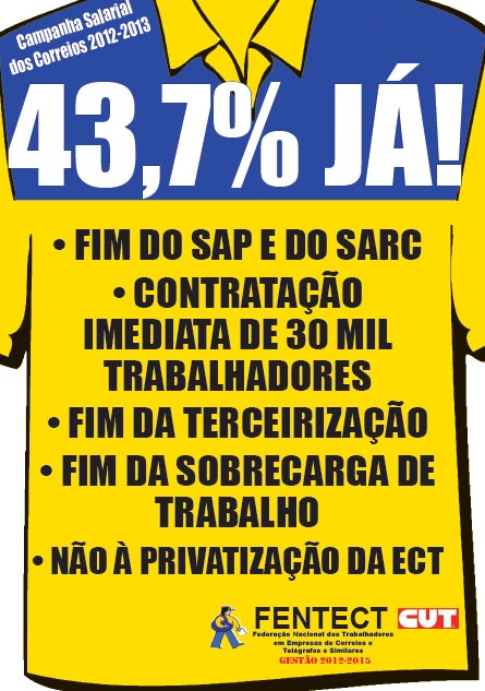 Entre as reivindicações dos funcionários dos correios está incluído  reajuste de 43,7%, o fim da terceirização da mão de obra,a contratação imediata dos concursados aprovados no concurso para os correios,o fim da sobrecarga de trabalho,o não a privatização.