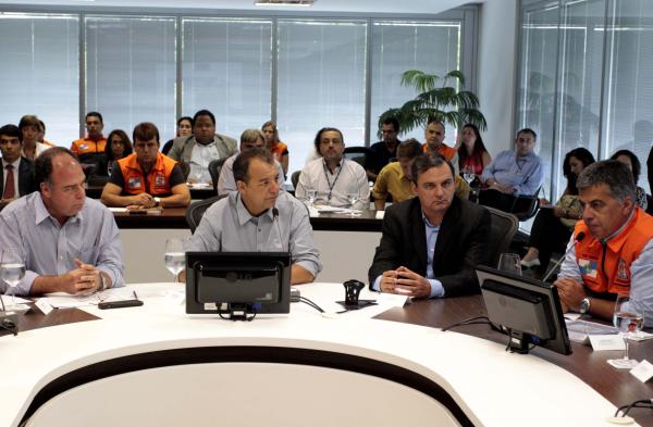 Segundo a Subsecretaria de Comunicação Social do Estado do Rio, o governador Sérgio Cabral participou, nesta sexta-feira, de uma reunião no Palácio Guanabara com o ministro da Integração Nacional, Fernando Bezerra, para avaliar a situação das chuvas que atingiram o estado do Rio de Janeiro. Estiveram presentes no encontro o Secretário Nacional de Defesa Civil, Humberto Viana, o secretário da Casa Civil, Regis Fichtner, o secretário de Defesa Civil, Sérgio Simões, o secretário de Desenvolvimento Econômico Julio Bueno, o secretário de Ambiente, Carlos Minc, dentre outros representantes do estado.