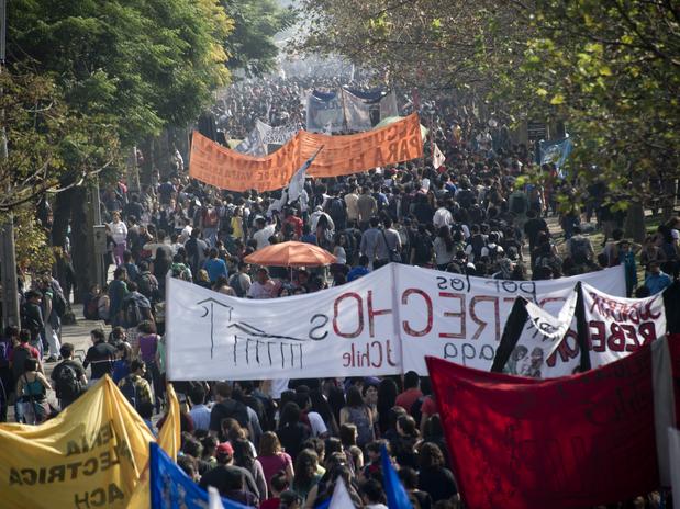 No Chile, os estudantes voltaram às ruas com apoio de várias categorias profissionais na tentativa de pressionar as autoridades a mudar o sistema de ensino no país. Lá, a educação superior é exclusivamente privada, não há universidades públicas. Os universitários querem reformas que incluam a possibilidade de ensino público superior gratuito.