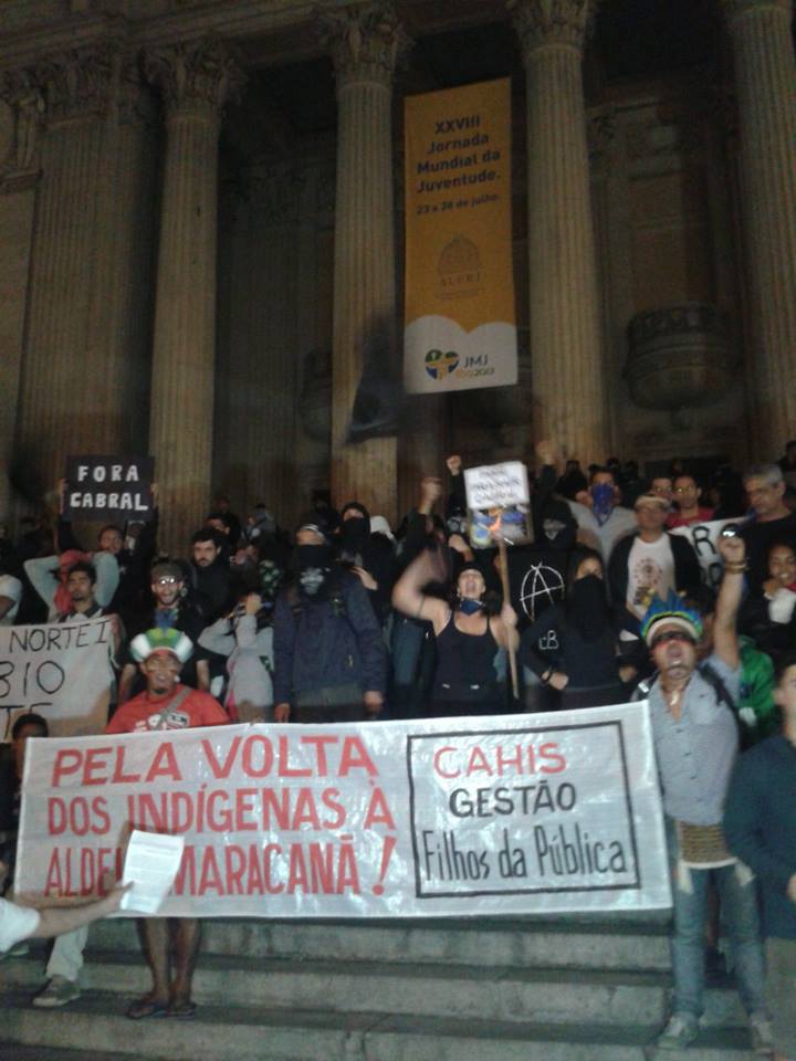 Mais cedo, o procurador-geral da Justiça, Marfan Vieira, recebeu uma carta de reivindicações de cerca de 700 pessoas. O grupo, que foi convocado pelos Black Blocs, por meio do Facebook, seguiu da Cinelândia até o prédio do Ministério Público, e também ocupou as escadarias do prédio da Assembleia Legislativa do Rio (Alerj).