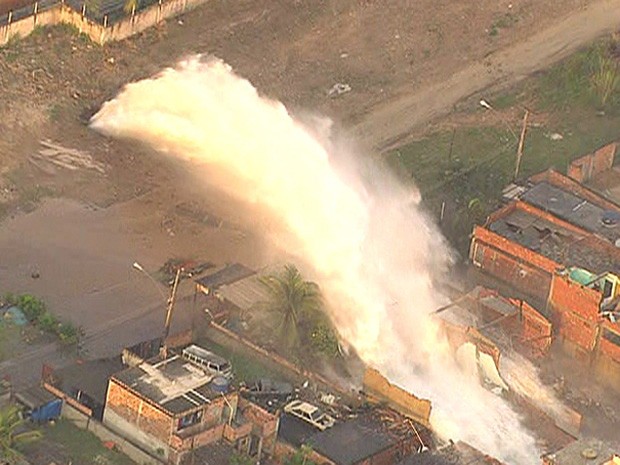 O rompimento da tubulação, na Estrada do Mendanha, fez com que um fluxo de 3 mil litros de água por segundo jorrasse sobre casas da região. Muitos moradores inicialmente pensaram que era chuva quando a água começou a bater nos telhados. Só depois perceberam que o jato era muito forte. Trinta e três casas foram atingidas, 17 desabaram e outras 16 tiveram algum tipo de dano. Pelo menos 70 pessoas estão desalojodas. As informações são dos bombeiros que realizam o atendimento às vítimas.