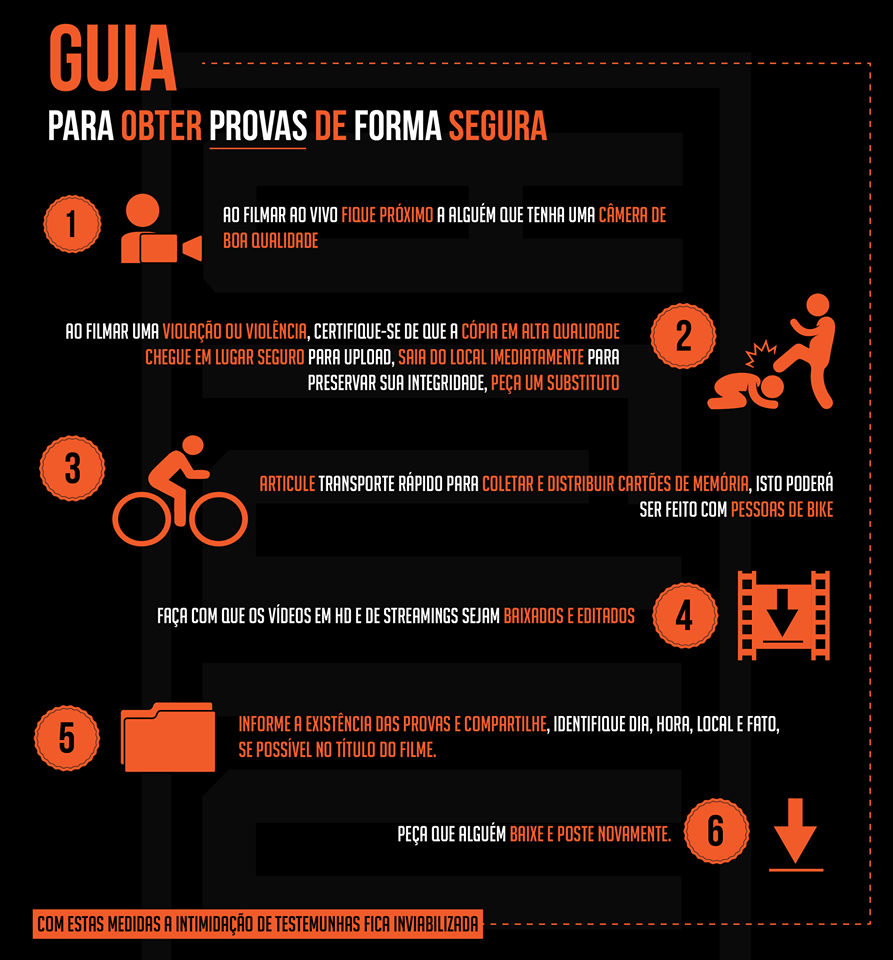 Na madrugada deste sábado, em preparação para as manifestações de 07 de setembro que está marcada já há alguns meses, a equipe da Mídia Ninja divulgou algumas instruções para que conseguir coletar as agressões por parte da polícia para com os manifestantes.