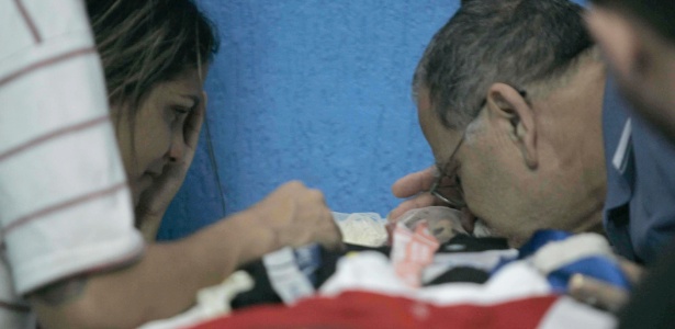 Em seguida, o menino cai e a avó corre em direção a ele. Ela fica abraçada ao neto.