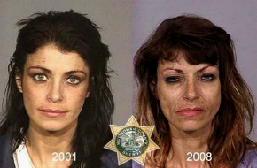 Para chamar a atenção de jovens americanos sobre os riscos do uso de álcool e drogas, a polícia de Multnomah County, em Oregon (EUA), divulgou uma série de fotos mostrando o efeito do uso dessas substâncias, a curto e longo prazo, em criminosos detidos