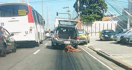 Alertados por pedestres e motoristas, policiais colocaram o corpo da mulher de volta na viatura