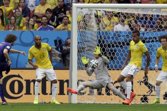 Dentro do estádio a previsão não se confirmou no primeiro tempo, que terminou em 2 x 0 para os europeus. Quem se aproximou mais do resultado dos primeiros 45 minutos de jogo foi o analista holandês Ruud Dautzenberg. Minutos antes da partida, Dautzenberg disse que gostou muito do Brasil e quer voltar, mas, segundo ele, o dia hoje é da Holanda. Ele e uma amiga, que estavam totalmente fantasiados, viraram sensação em frente ao Mané Guarrincha e tiveram que parar a cada dez passos para tirar fotos com brasileiros. “Cheguei há seis semanas e volto na próxima semana para meu país. Está tudo muito bom”, afirmou.