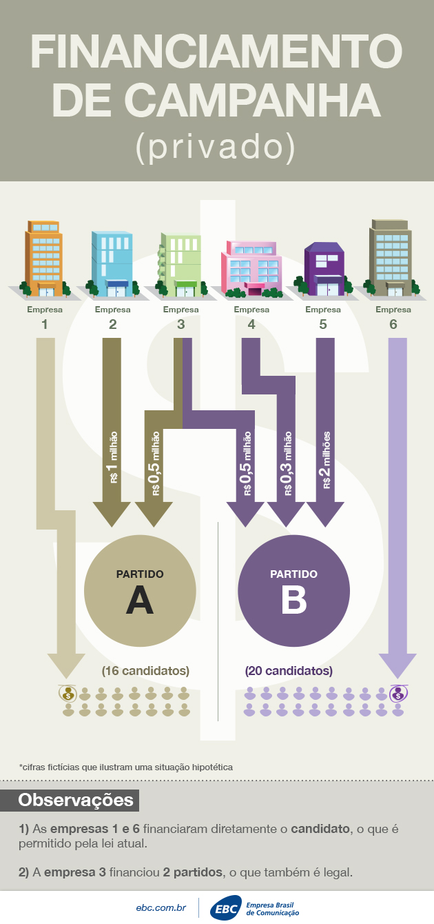 A principal proposta para alterar o modelo atual de financiamento de campanhas é proibir a participação de empresas privadas entre os doadores, que hoje podem apoiar um partido ou candidato específico. No sistema de financiamento misto, atualmente adotado no Brasil as doações são divididas entre doações de empresas privadas e verbas públicas do Fundo Partidário, abastecido pela União. A alternativa a esse modelo é o financiamento público de campanha. Conheça diferentes modelos de financiamento público de campanha