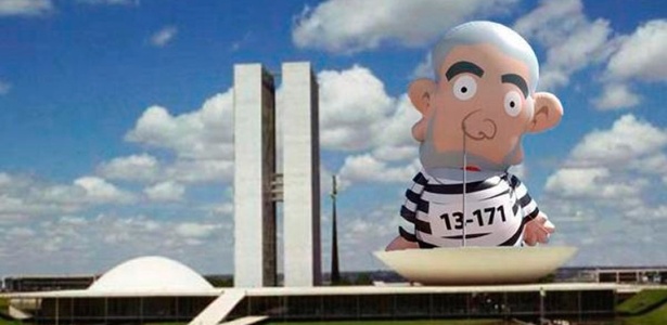 Boneco inflável Lula presidiário é sucesso no Brasil