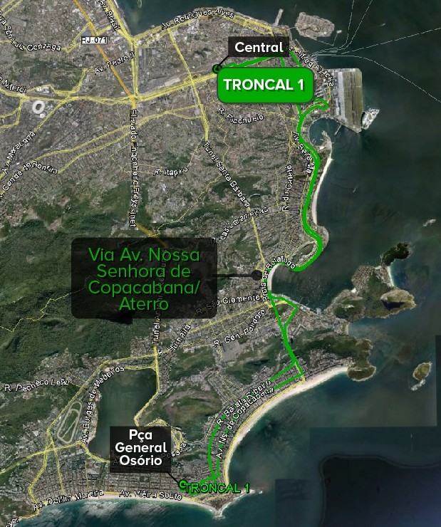 Troncal 1 – Pça General Osório/ Central (via Av. Nossa Senhora de Copacabana/ Aterro