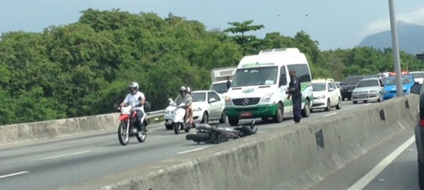 Uma mulher que pilotava uma motocicleta morreu num acidente na Linha Vermelha, sentido Baixada, na altura da Maré na tarde deste domingo (6).Segundo informações a mulher teria sido atingida por uma linha de pipa.