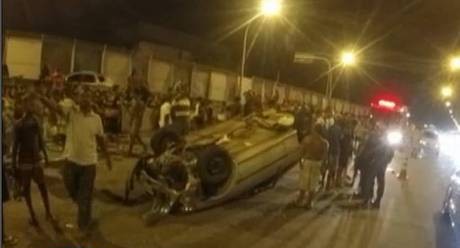 Um carro capotou após atropelar três vendedores que vendiam água e biscoito na pista. , na altura da Maré, sentido centro. Moradores do Conjunto de Favelas da Maré invadiram as pistas  e atearam fogo ao carro  envolvido no acidente. Bombeiros e equipes do BPVE e do 22ºBPM foram acionados.