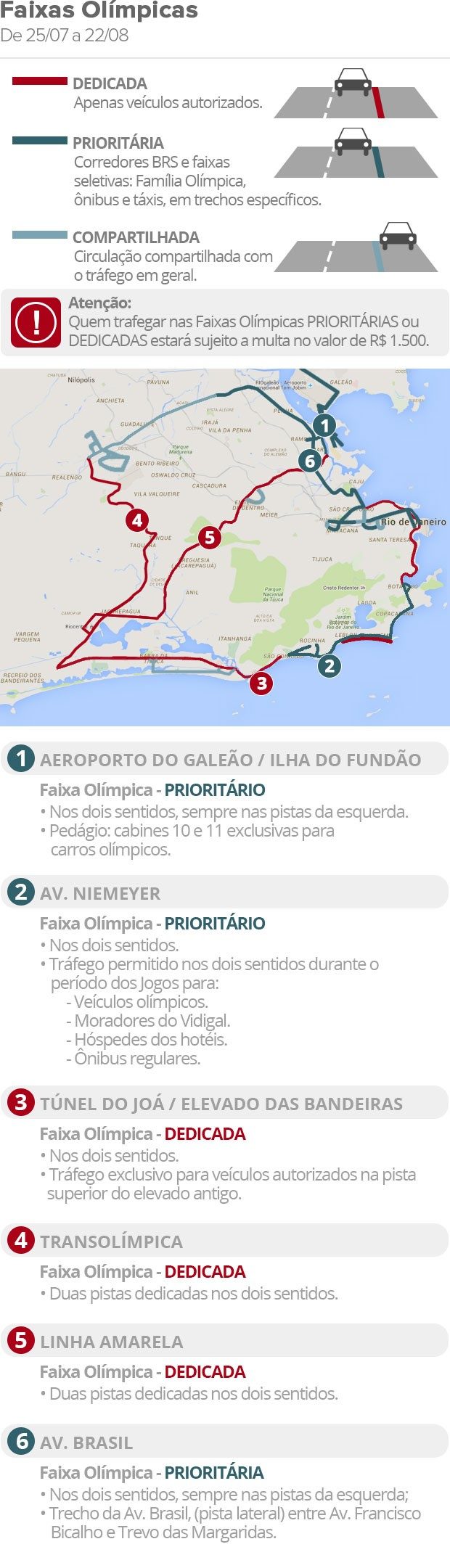 A Justiça do Rio decidiu nesta quarta-feira (27), em segunda instância, que volta a valer a multa de R$ 1,5 mil para motoristas que trafegarem, sem autorização, pelas faixas olímpicas – reservadas a delegações e organizadores da Olimpíada.