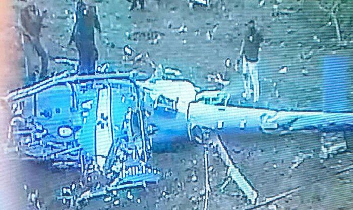 Imagens das câmeras da CET-Rio mostraram um helicóptero no chão, bastante destruído, e cercado por policiais.
