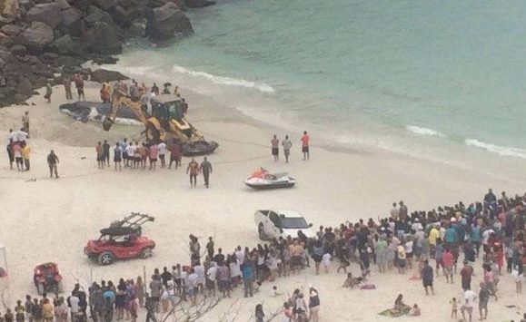 Segundo informação do Corpo de Bombeiros, a operação envolveu agentes da corporação, da Guarda Marítima Ambiental e da Defesa Civil, além de biólogos do Instituto Estadual do Ambiente (Inea). O mutirão contou com a ajuda de uma retroescavadeira, para cavar um buraco na areia, a fim de que a baleia continuasse a receber água do mar. Um cinturão foi formado para afastar os banhistas do local, até o fim da operação.