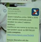hackers conseguem acessar dados pessoais e bancários de quem cair na armadilha. Uma mensagem circula em um aplicativo com o texto que afirma que quem trabalhou entre 1998 e 2016 supostamente poderia receber dois salários mínimos. A pessoa é direcionada a uma página da internet, onde deve compatilhar a mensagem com outros dez amigos. De acordo com dados de uma empresa de segurança digital, mais de 100 milhões de pessoas acessaram o golpe em 6 meses.