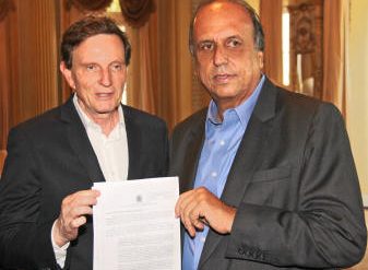 O governador Luiz Fernando Pezão e o prefeito Marcelo Crivella firmaram, nesta terça-feira, no Palácio da Cidade, duas importantes parcerias. A primeira é uma permuta de terrenos: o Governo do Estado entrega uma área em Rio das Pedras destinada a um projeto de urbanização da prefeitura, que, por sua vez, cede um terreno na Estrada dos Bandeirantes, em Vargem Pequena, para o estado construir a 4ª Companhia do 31° BPM da Polícia Militar. A segunda permitirá melhorias no conjunto habitacional Cruzada São Sebastião, no Leblon, como contrapartida à construção de uma arena multiuso do Flamengo, em sua sede, na Gávea.