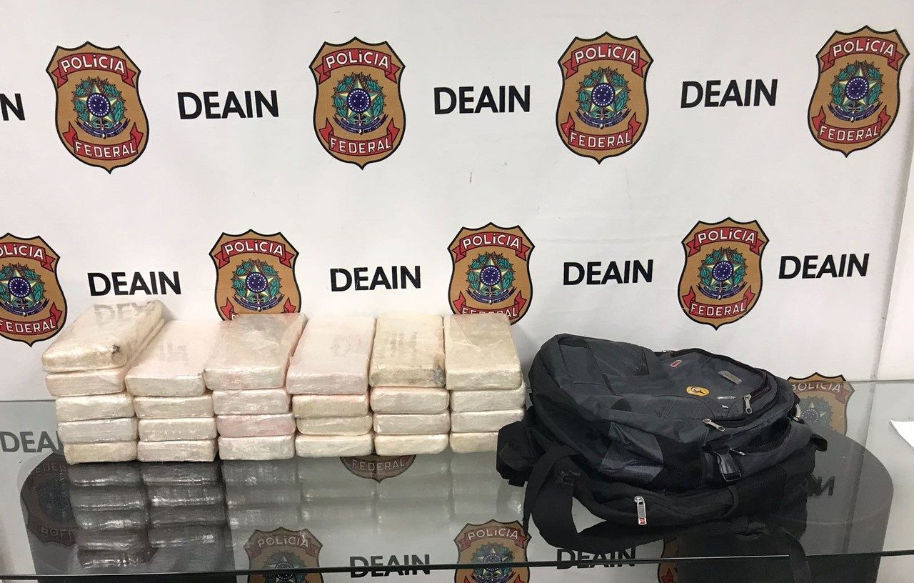 A Polícia Federal apreendeu, na quinta-feira (9), 26 kg de cocaína que, de acordo com a corporação, seria enviada do Rio de Janeiro para a França. A droga estava acondicionada em mochilas que seriam colocadas em containers, junto as bagagens de passageiros do Aeroporto Internacional Tom Jobim. Três homens foram presos em flagrante.