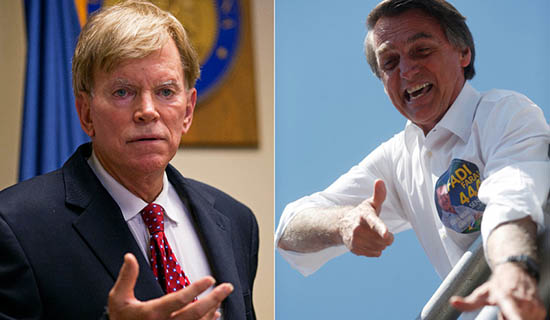 Um dos mais conhecidos defensores da supremacia branca, apoiador de Donald Trump, Duke compartilhou no Twitter um vídeo antigo de Bolsonaro, com legendas em inglês, no qual o deputado discursa, em comissão da Câmara, contra a educação de gênero na escola pública.