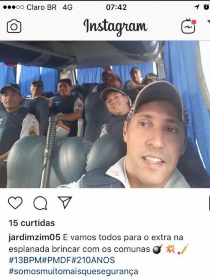 A Secretaria de Segurança Pública do Distrito Federal (SSP/DF) informou que a postagem do policial militar não condiz com padrão profissional da Polícia Militar do DF, além de contrariar normas de conduta preconizadas pela SSP/DF. A pasta determinou que seja aberto procedimento administrativo para análise do caso.