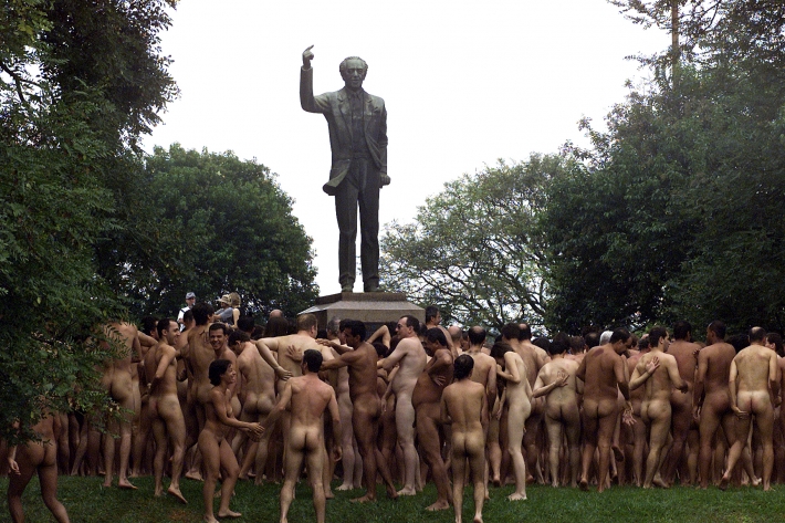 Ao buscar a foto que viralizou no Facebook, é fácil comprovar que a reunião de pessoas peladas ocorreu no dia 7 de outubro de 2001. Segundo informou o jornal australiano The Daily Telegraph, trata-se da sessão de fotos “Naked City” (Cidade Nua, em inglês) para o artista Spencer Tunick. Ele é conhecido por tirar fotografias de grandes aglomerações de corpos nus.