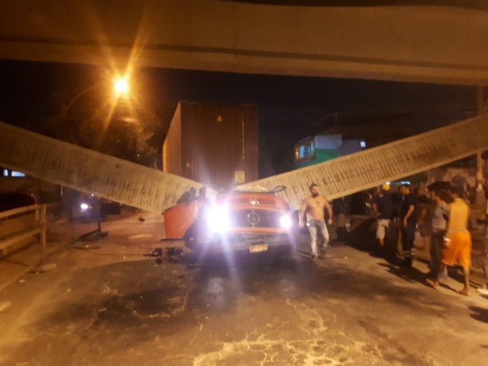 De acordo com a Secretaria Municipal de Infraestrutura e Habitação, o caminhão teria uma altura superior àquela permitida na via.