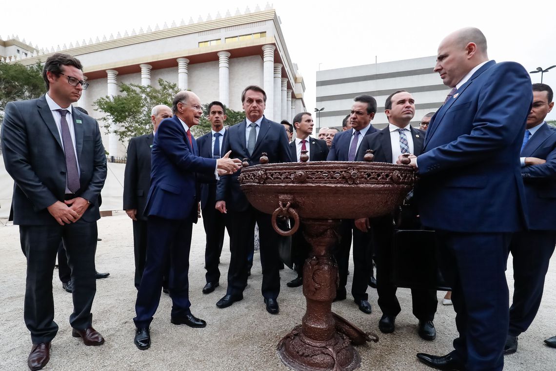 O presidente Jair Bolsonaro chegou ao Templo de Salomão, da Igreja Universal do Reino de Deus, no bairro do Brás, na capital paulista, na manhã deste domingo (1). Ele chegou de helicóptero.