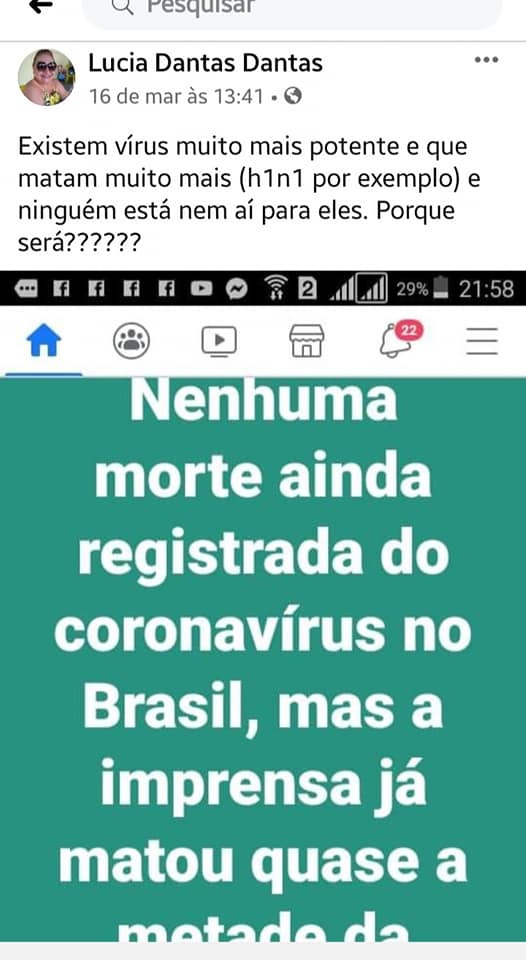 Em suas redes sociais, a médica chegou a dizer que: “Existem vírus muito mais potentes e que matam muito mais (H1N1 por exemplo) e ninguém está nem aí para eles. Por que será?”. Após sua morte, todas as publicações relacionadas ao coronavírus foram apagadas.