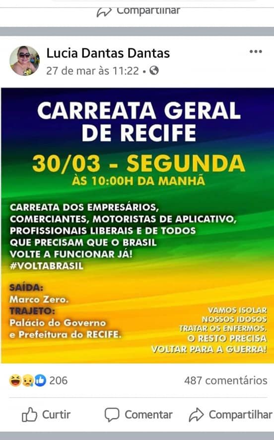 Médica que participou de carreata contra isolamento social morre de coronavírus