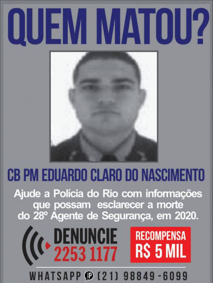O cabo da Polícia Militar Eduardo Claro do Nascimento morreu após ser atacado por criminosos na rua Matriz Agostinho Porto, em São João de Meriti, na Baixada Fluminense, na tarde desta quinta-feira (11).
