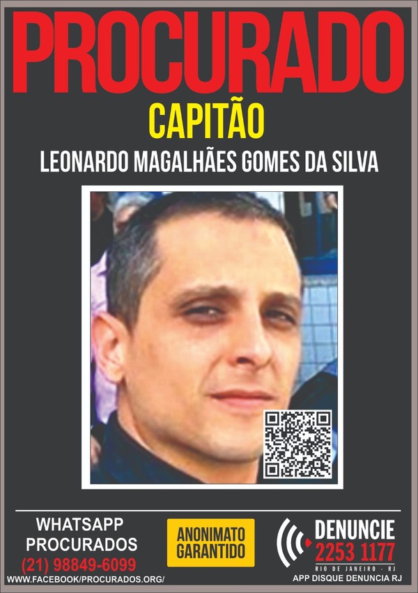 Para ajudar a Delegacia de Homicídios da Capital, o Portal dos Procurados do Disque Denúncia divulgou nesta quinta-feira um cartaz com informações que podem levar à localização e prisão do oficial do capitão Leonardo Magalhães Gomes da Silva, que tem 33 anos.