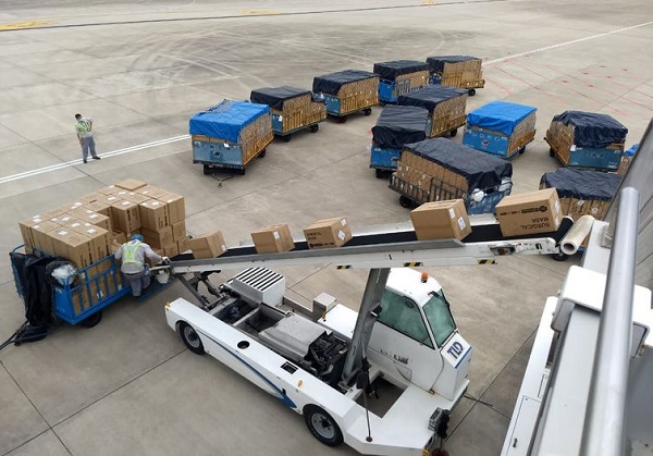 O avião foi fretado pelo Ministério da Infraestrutura, que vai contratar mais de 40 voos para transportar ps volumes para os destinos finais. A carga de 7,942 milhões de máscaras cirúrgicas de três camadas foi transportada em aeronave de passageiros Boeing-777, que aterrissou no Aeroporto Internacional de Guarulhos, em São Paulo.