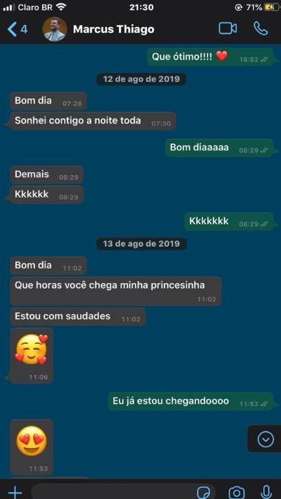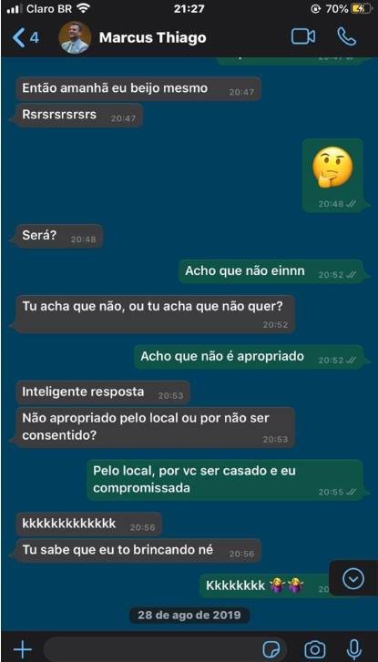 De acordo com o Diário Oficial da União (DOU), Marcus Thiago foi nomeado para o cargo no dia 17 de junho do ano passado para receber um salário bruto mensal de R$ R$ 10.373,30. Os diálogos perduraram por pelo menos um mês e, embora a postura da estudante demonstre distanciamento dos desejos carnais do chefe, a investida tem uma escalada obscena.