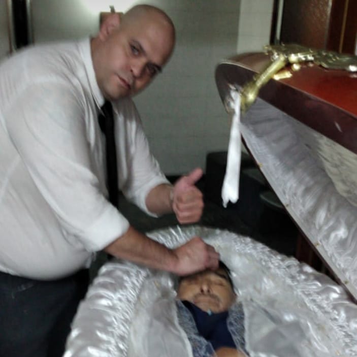 A imagem do agente funerário fazendo sinal de positivo, com o caixão aberto, enquanto tocava o rosto de Maradona começou a viralizar no final da manhã de quinta em diversos perfis no Twitter e em grupos do WhatsApp.