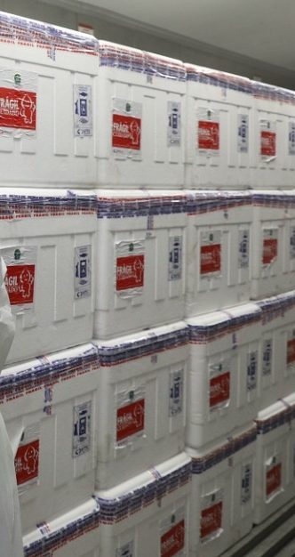 Desse total, 200 mil doses foram levadas ao Centro de Distribuição e Logística da Secretaria da Saúde de São Paulo. Setecentas mil vão para a central de distribuição do Ministério da Saúde em Guarulhos, na região metropolitana de São Paulo.