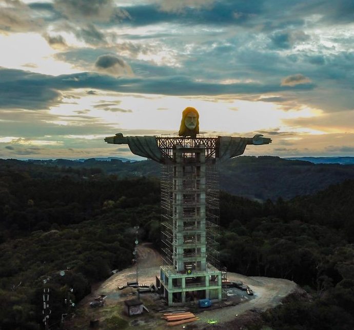 A obra do Cristo de Encantado ganhou destaque na semana passada, quando os promotores do projeto concluíram o içamento dos braços e da cabeça da estátua.