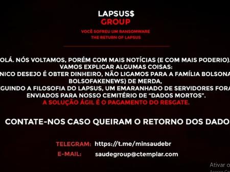 Embora a mensagem fale em “poderio”, os dados do Ministério da Saúde, alvo do primeiro ataque, na madrugada, não chegaram a ser roubados. A Polícia Federal abriu um inquérito para investigar a invasão e, em nota, afirmou que os bancos de dados de sistemas da pasta não foram criptografados pelos hackers.