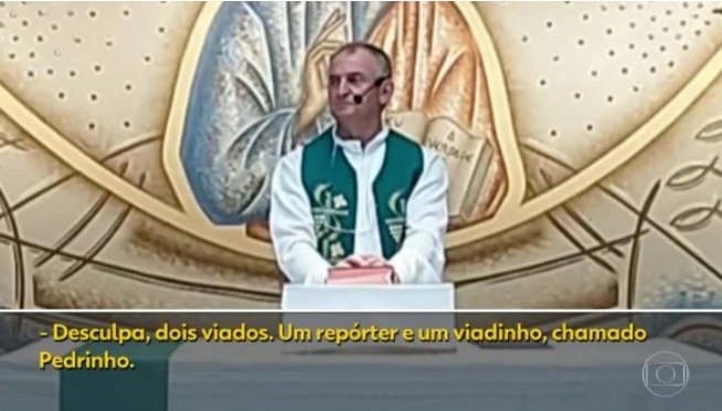 Na ocasião, o padre expressou repúdio à união homossexual e reiterou a convicção em torno do casamento bíblico: “Dois veados, me desculpa, mas dois veados. Um repórter e um viadinho, chamado Pedrinho. ‘Prepara meu almoço que estou chegando com saudade’. Ridículo”, disse o padre.