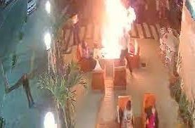 Um dos clientes foi diretamente atingido pelas chamas e outros clientes e funcionários correram para socorrê-lo.