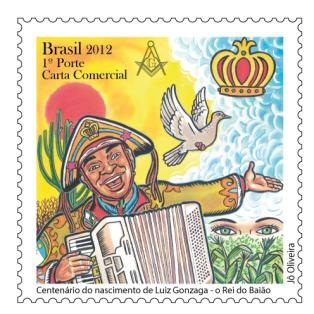 Com arte do pernambucano Jô Oliveira, o selo traz desenho a nanquim de vários elementos retratando a vida sertaneja do cantor e a música Asa Branca. Em primeiro plano pode-se ver a imagem de Gonzaga vestido com a tradicional roupa de vaqueiro e chapéu de couro, segurando uma sanfona. Ao alto, no canto direito, a coroa representa a majestosa obra do cantor.