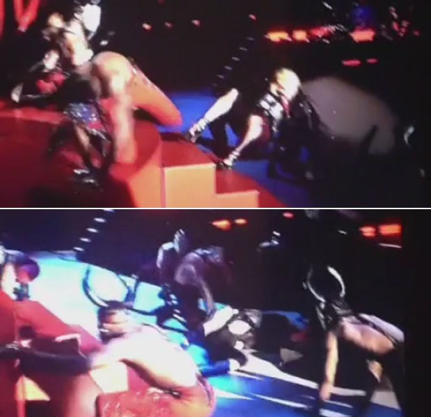 Madonna levou um tombo espetacular em pleno palco durante sua apresentação, nesta quarta-feira (25/02), no Brit Awards 2015. O show era o último do evento, que aconteceu na O2 Arena, em Londres, capital da Inglaterra.