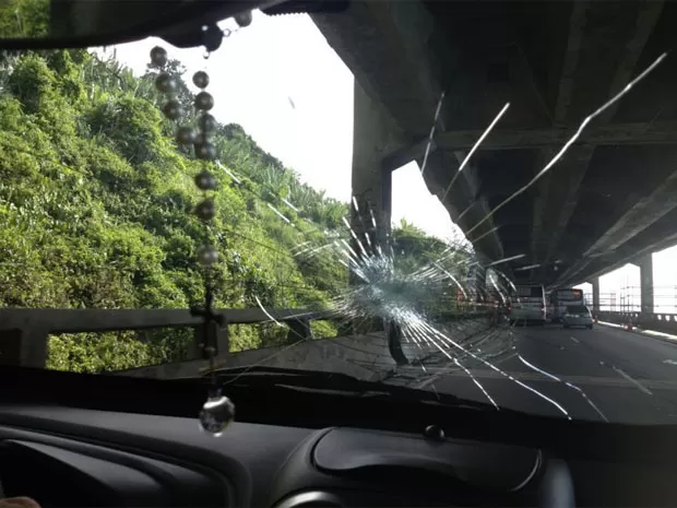 No último domingo (21), no Elevado do Joá, um motorista que seguia no sentido São Conrado também foi vítima do crime à luz do dia. A pedra bateu no capô e por pouco não atingiu o para-brisas.